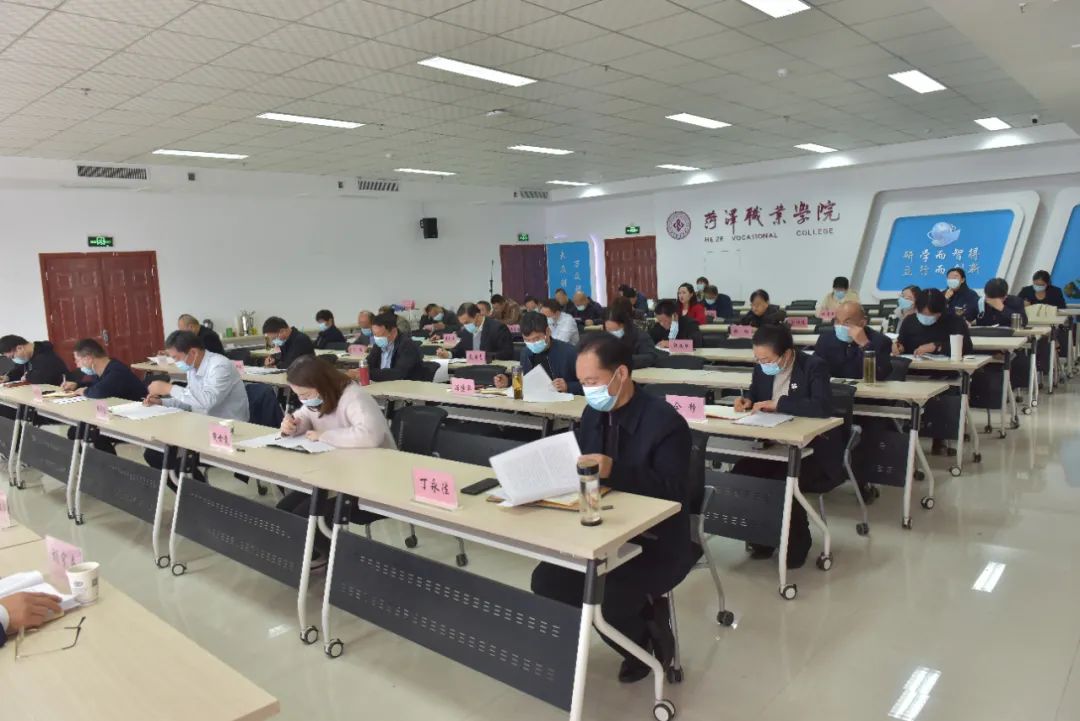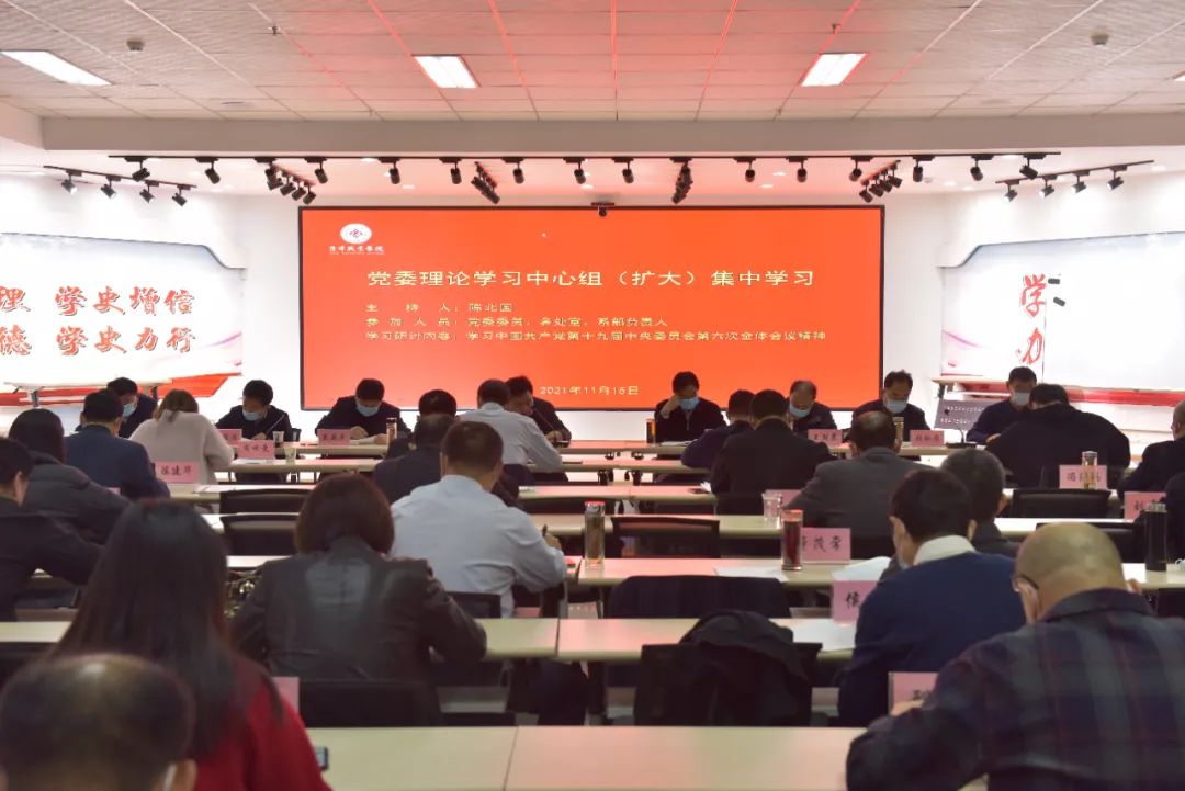 11月15日上午,金年会在创业园903会议室举行党委理论学习中心组(扩大)集中学习,深入学习研讨十九届六中全会精神。金年会党委委员及各处室、系部(院)主要负责人参加学习,会议由党委书记陈北国主持。