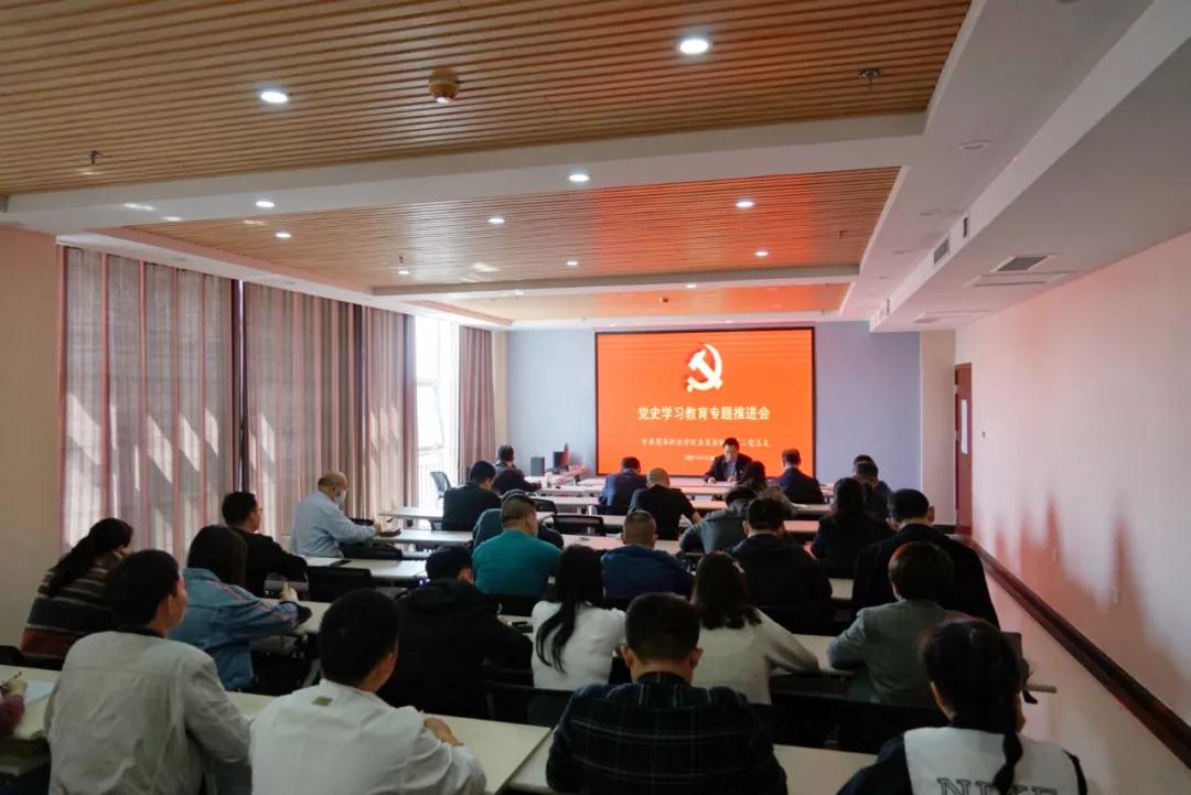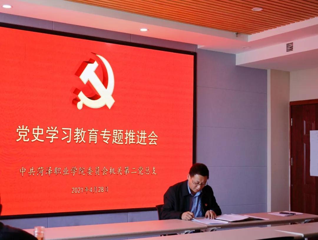 4月28日下午,中共金年会委员会第二总支部委员会在创业园709会议室召开党史学习教育专题推进会暨集中理论学习会。会议由第二党总支书记陈兆刚同志主持,总支全体党员参加。